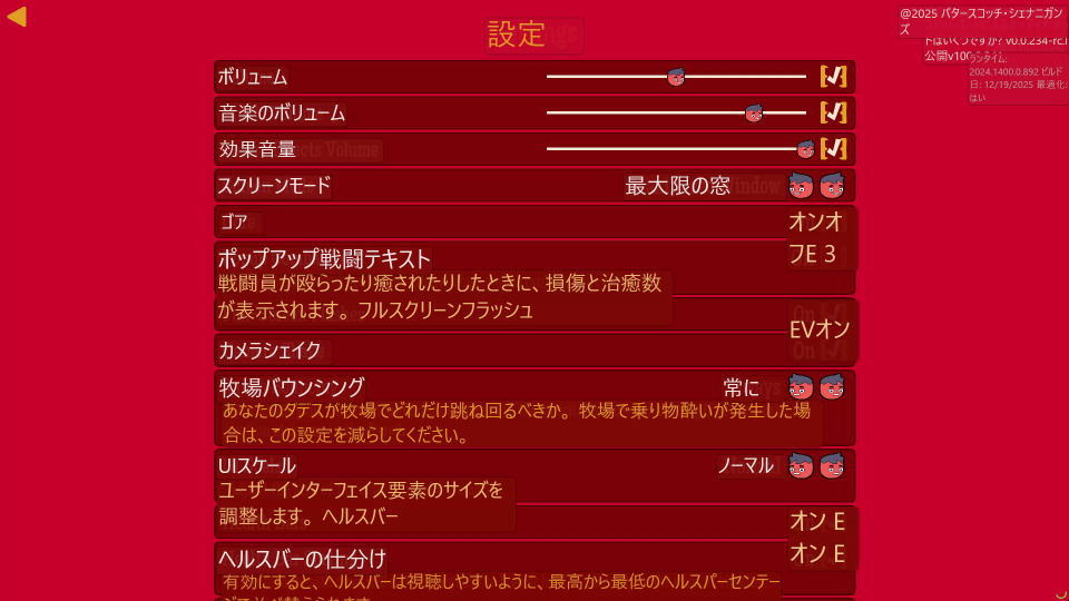 最後のサンプル画面は、タイトルメニューから開ける「設定」です。