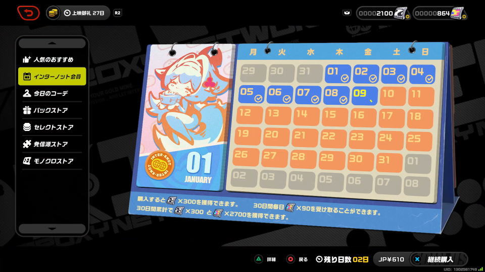 月間で購入できる個数が制限されており、毎月1日にその制限が撤廃され購入可能となる月替わりアイテム。