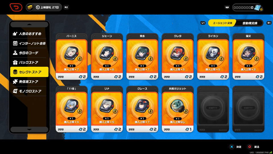 ゼンゼロの各商品にはメニューを開き、右から2番目にある「ストア」からアクセスできます。