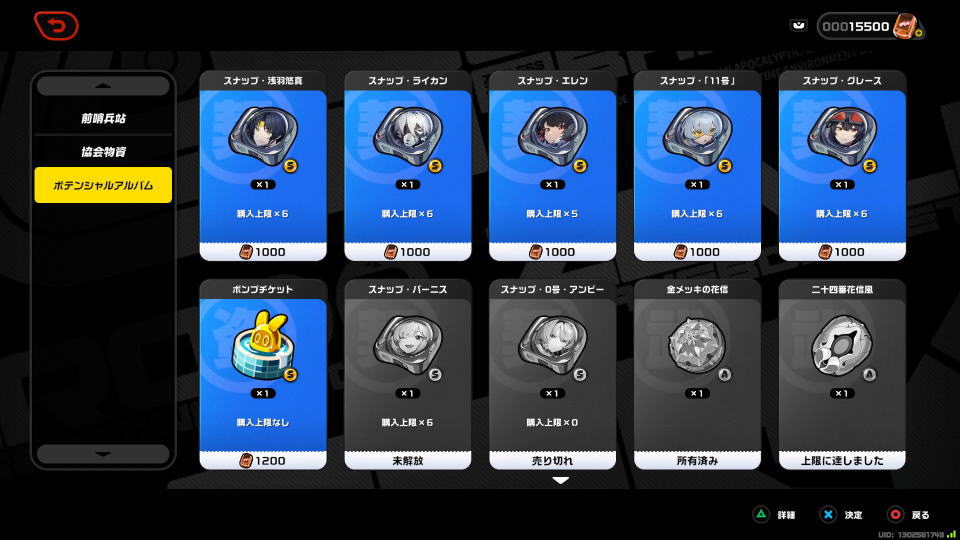| ポテンシャルアルバム(月替り) | 単価 | 限定数 | おすすめ |